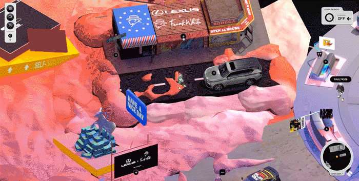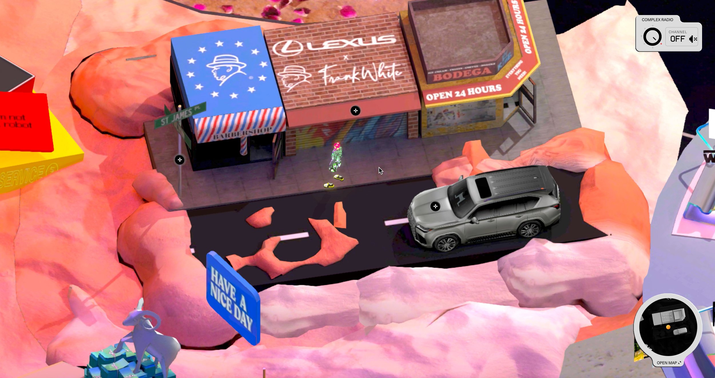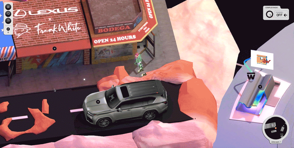 Lexus x Frank White (Biggie’s son) we’re in partnership to create something memorable in honor of Biggie. The campaign included a video piece of Frank White traversing through Bed Stuy in their new Lexus as he visited spots that we’re special to him and his father. I collabed with our vendor partners on bringing to life an activation that felt like a campaign piece to the video. We created a block of shops that felt straight out of BedStuy and felt like a time capsule amongst the other activations in Complexland. The circles with plus signs we’re active hot spots to take you to more info and shopping.